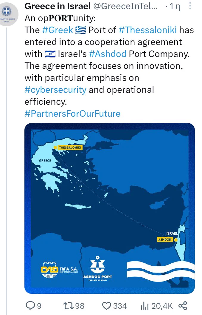 «Η Τουρκία, η οποία προκαλεί φόβο με τις στρατιωτικές της τεχνολογικές δυνατότητες και κάνει εντυπωσιακές κινήσεις στην Ανατολική Μεσόγειο, υπέγραψε μια συμφωνία που θα έχει έντονη απήχηση στην Ελλάδα» σημειώνει και σύμφωνα με το ίδιο, στη στρατιωτική βάση, που θα δημιουργηθεί στο λιμάνι, σχεδιάζεται η εγκατάσταση τουρκικών μη επανδρωμένων αεροσκαφών και συστημάτων αεράμυνας.